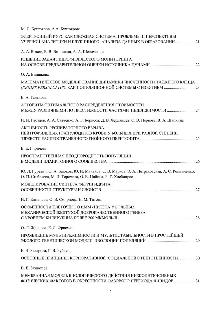 Аннотация: Рассмотрены проблемы функционирования сложных систем (физических, химических, биологических, экологических, медицинских, сельскохозяйственных, социально-экономических, образовательных, технических, языковых, информационных, систем культуры и искусства) на разных уровнях организации по следующим основным направлениям: методы описания и моделирования сложных систем; устойчивость сложных систем; поведение сложных систем в экстремальных условиях; риск деградации сложных систем в экстремальных условиях; проблемы динамики сложных систем северных территорий.