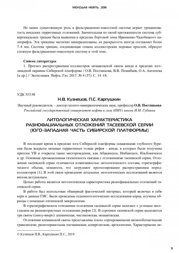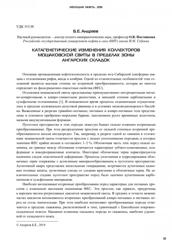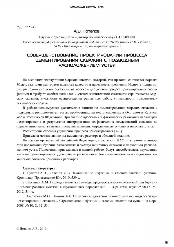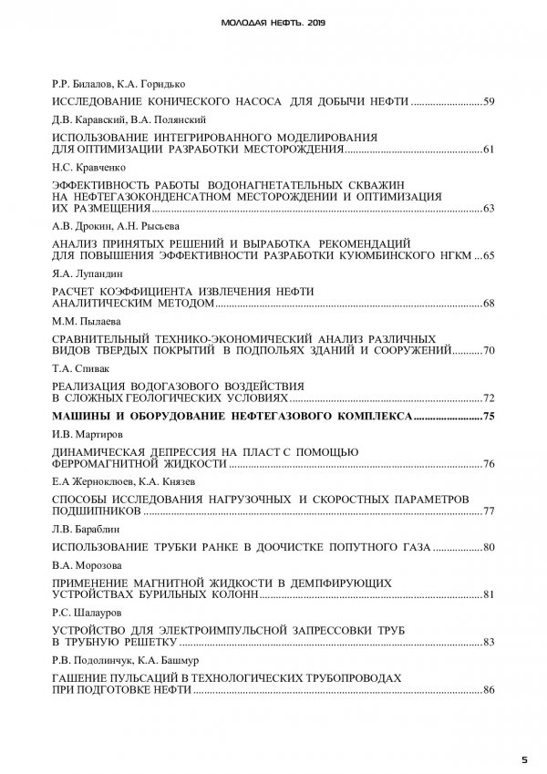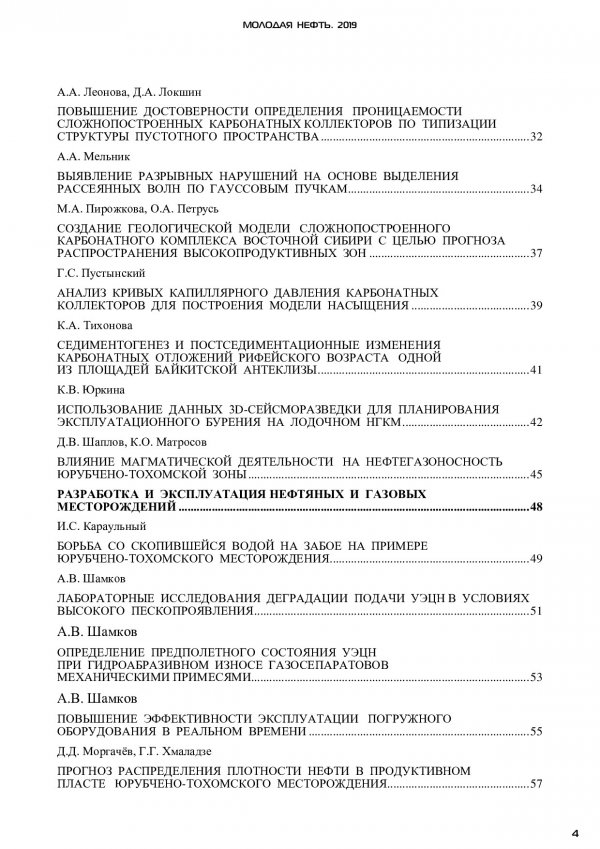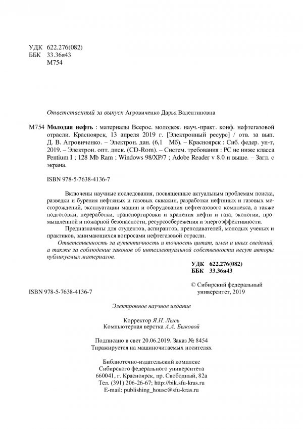 Библиографическое описание: Молодая нефть : материалы Всеросcийской молодежной научно-практической конференции нефтегазовой отрасли. Красноярск, 13 апреля 2019 г. / Сиб. федер. ун-т, Ин-т нефти и газа ; отв. за вып. Д. В. Агровиченко. - Электрон. текстовые дан. (pdf, 4,3 Мб). - Красноярск : СФУ, 2019. - Загл. с титул. экрана. - ISBN 978-5-7638-4136-7 : Б. ц. - Изд. № 2019-8454. - Текст : непосредственный.