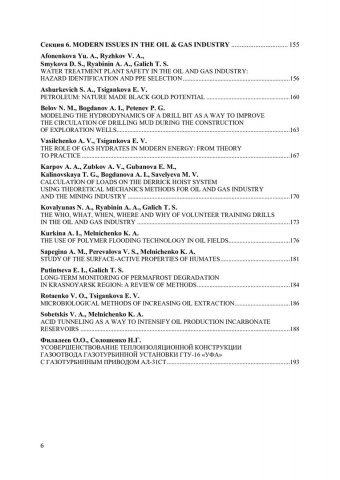 Аннотация: Представлены тезисы работ по следующим направлениям: экология, промышленная и пожарная безопасность, ресурсосбережение и энергоэффективность в нефтегазовом комплексе; машины и оборудование нефтегазового комплекса; технологии подготовки, транспортировки, хранения и переработки нефти, газа и газового конденсата; технологии поисков, разведки и бурения нефтяных и газовых скважин; разработка и эксплуатация нефтяных и газовых месторождений. Рассмотрены существующие проблемы, предложены возможные решения, а также выдвинуты новые гипотезы. Будут интересны студентам всех специальностей нефтегазовой индустрии и преподавателям профильных вузов, а также всем тем, кто интересуется проблемами отрасли.