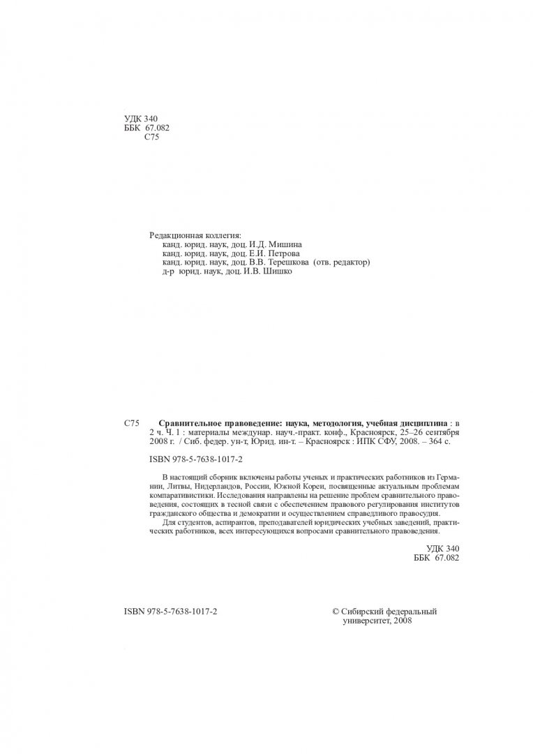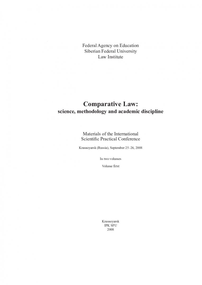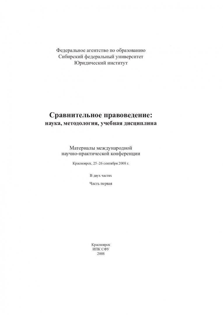 Сравнительное правоведение: наука, методология, учебная дисциплина : материалы международной научно-практической конференции. Красноярск, 25-26 сентября 2008 г.. Часть 1
