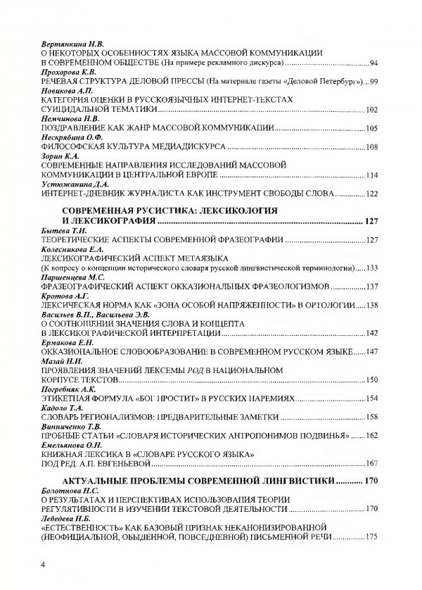 Ключевые слова:стилистика и культура речи общая, риторика, языковая норма, речевая практика, фактура речи, юрислингвистика, языковые конфликты, риторические приемы, стилистические фигуры, русский литературный язык, антиметабола, гипербола, метафорические модели, метафоры в политическом дискурсе, сравнительная фразеология, болгарский язык, образные устойчивые сравнения, городская речь, городская субкультура, язык городской среды, речевое поведение молодежи, молодежная субкультура, риторический анализ текстов, речемыслительные способности студентов, риторическая критика, язык и стилистика СМИ, публицистические тексты, лингвистический анализ текста, советизмы, газетные тексты, жанры журналистики, газетные публикации, игровое моделирование, язык массовой коммуникации, медиатексты, языковая игра, прецедентные тексты, литературные формы, заимствования языковые, манипулятивные технологии и воздействия, журналистская коммуникация, язык и стиль средств массовой информации, рекламный дискурс, деловая пресса, речевая структура газетного жанра, интернет общения, язык, суицидальное поведение, Интернет-зависимость личности, лингвокультурология, поздравление, как речевой жанр, лингвофилософия, массмедийный дискурс, информационно-коммуникативные технологии, массовые коммуникации, Интернет-журналистика, свобода СМИ и журналистской деятельности, русистика, лексикология русского языка, лексикография русского языка, фразеография, метаязык, металингвистика, лингвистические термины, исторические словари, терминологические, окказионализмы, фразеологизмы русского языка, лексическая норма языка, концепт (лингв), словари, идеографические, словообразование в русском языке, лексема "род", Национальный корпус текстов, паремии русского языка, бог, языковые значения слова, речевой этикет, региональные языки и языки национальных меньшинств, словари, антропонимические, книжная лексика, словари, литературные, регулятивность текста, текстовая деятельность, лингвистика текста, естественная письменная речь, концепт "функция", неоднозначность слов в лингвистике, языковая картина мира, семантические категории, сопричастность и чуждость в русском языке, языковая личность, лингводидактика, интерпретация художественного текста, агнонимы, идиоматичность производного слова, перевод фразеологизмов, лексикология французского языка, жаргон, арго (лекс.), инфинитивные предложения, модальность (лингв), древнерусский язык, текстология, местоимения, устная речь, итальянизмы, орфография русского языка, язык и стилистика художественных произведений, концептосфера художественного текста, русско-польские словари, русско-польская лексикография, ненормативная лексика, литература красноярских писателей, художественный метод писателя, концепт "жизнь", концепт "грех", концептуализм в искусстве и литературе, музыкальные реминисценции в литературном тексте, литературный процесс, Сибирь в литературе, литературные герои, История государства Российского, пародия - литературный жанр, историко-литературный процесс ХIХ века, поэтика романов, мотив произведения, художественный мир писателей, анализ художественной образности, социалистический реализм в литературе, русская литература : история и критика, 20 в., творчество Астафьева В. П., художественный обр
