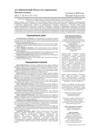 Библиографическое описание:Ars Administrandi (Искусство управления), 2022, том 14, № 3 : научный журнал : Журнал. - 1. - Пермь : Пермский государственный научный исследовательский университет, 2022. - 202 с. - Б. ц. - Текст : непосредственный.