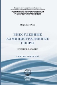Библиографическое описание:Порываев, Сергей Александрович. Внесудебные административные споры : Учебное пособие / Российский государственный университет правосудия г. Москва. - Москва : Российский государственный университет правосудия, 2023. - 92 с. - ISBN 978-5-00209-054-9 : Б. ц. - Текст : непосредственный.