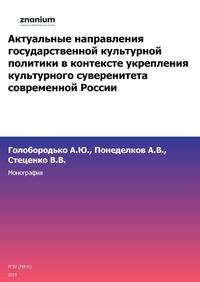 Библиографическое описание:Голобородько, Андрей Юрьевич. Актуальные направления государственной культурной политики в контексте укрепления культурного суверенитета современной России : Монография / Ростовский государственный экономический университет (РИНХ) ; Российская академия народного хозяйства и государственной службы при Президенте РФ, ф-л Южно-Российский институт управления. - 1. - Ростов-на-Дону : Ростовский Государственный Экономический Университет (РГЭУ, бывший РИНХ), 2019. - 140 с. - ISBN 978-5-7972-2642-0 : Б. ц. - Текст : непосредственный.