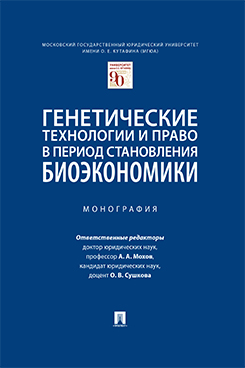 Библиографическое описание:Генетические технологии и право в период становления биоэкономики. Монография / МГЮА им. О.Е. Кутафина ; Отв. ред. Мохов А.А., Сушкова О.В. - Москва : Проспект, 2020. - 632 с. - ISBN 978-5-392-32880-2 : Б. ц. - Текст : непосредственный.