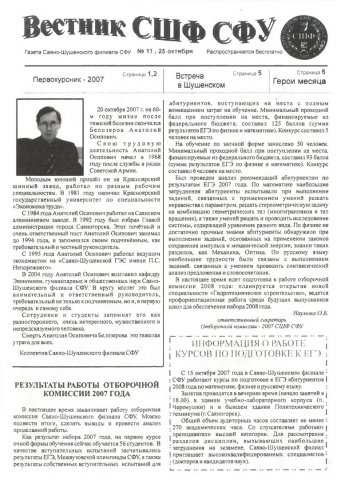- Выписка из протокола заседания научно-методического совета СШФ СФУ от 19 октября 2007 г.. — С. 4.