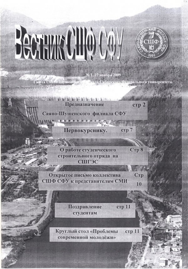 - Предназначение Саяно-Шушенского филиала СФУ. — С. 2-6.