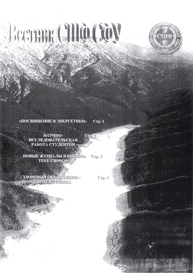 Вестник СШФ СФУ : газета Саяно-Шушенского филиала СФУ. 2010 г. № 1 (январь)выпуск журнала/газеты