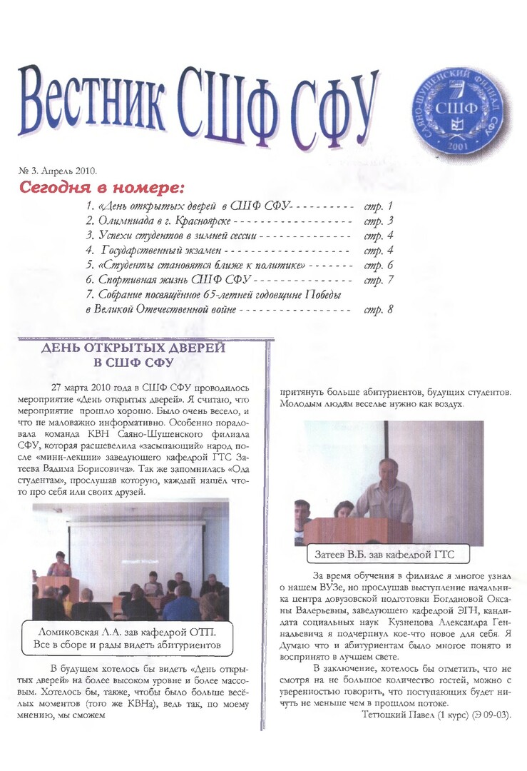 - День открытых дверей в СШФ СФУ. — С. 1-3.