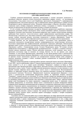 Библиографическое описание:Чиганова, Светлана Дмитриевна. Системооборазующий фактор в подготовке специалистов для социальной работы / С. Д. Чиганова. - Текст : непосредственный // Вестник Красноярского государственного университета. - 2000. - Гуманитарные науки, № 2. - С. 60-65.