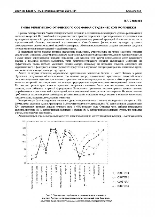 Библиографическое описание:Стариков, Павел Анатольевич. Типы религиозно-этического сознания студенческой молодежи / П. А. Стариков. - Текст : непосредственный // Вестник Красноярского государственного университета. - 2001. - Гуманитарные науки, № 1. - С. 60-66. - Библиогр. в конце ст.