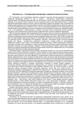Библиографическое описание:Кутилова, Лариса Александровна. Критика М. С. Грушевским концепции "общерусской истории" / Л. А. Кутилова. - Текст : непосредственный // Вестник Красноярского государственного университета. - 2001. - Гуманитарные науки, № 1. - С. 35-38. - Библиогр. в конце ст.
