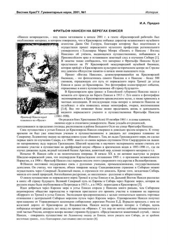Библиографическое описание:Прядко, Иван Андреевич. Фритьоф Нансен на берегах Енисея / И. А. Прядко. - Текст : непосредственный // Вестник Красноярского государственного университета. - 2001. - Гуманитарные науки, № 1. - С. 39-43. - Библиогр. в конце ст.
