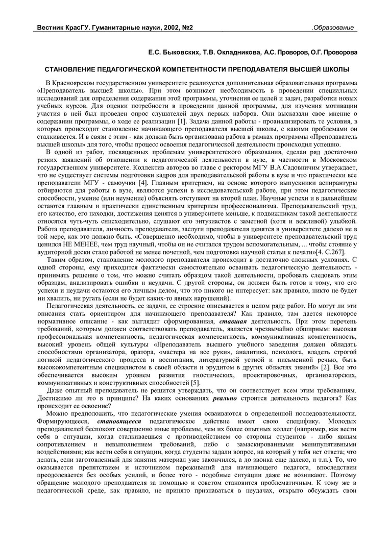 Библиографическое описание:Становление педагогической компетентности преподавателя высшей школы / Е. С. Быковских [и др.]. - Текст : непосредственный // Вестник Красноярского государственного университета. - 2002. - Гуманитарные науки, № 2. - С. 42-47. - Библиогр. в конце ст.