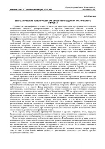Библиографическое описание:Смолина, Анджелла Николаевна. Зевгматические контрукции как средство создания трагического эффекта / А. Н. Смолина. - Текст : непосредственный // Вестник Красноярского государственного университета. - 2002. - Гуманитарные науки, № 2. - С. 124-129. - Библиогр. в конце ст.
