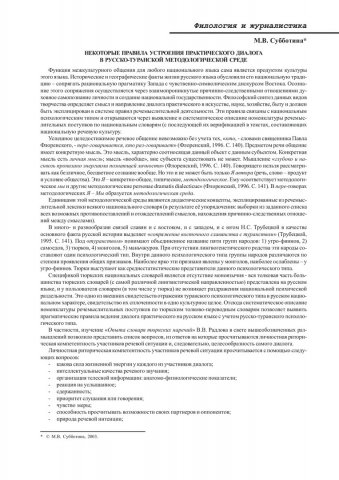 Библиографическое описание:Субботина, М. В. Некоторые правила устроения практического диалога в русско-туранской методологической среде / М. В. Субботина. - Текст : непосредственный // Вестник Красноярского государственного университета. - 2003. - Гуманитарные науки, № 4. - С. 137-141. - Библиогр. в конце ст.