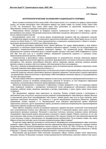 Библиографическое описание:Павлов, Александр Павлович. Антропологические основания социального порядка / А. П. Павлов. - Текст : непосредственный // Вестник Красноярского государственного университета. - 2003. - Гуманитарные науки, № 4. - С. 10-13. - Библиогр. в конце ст.
