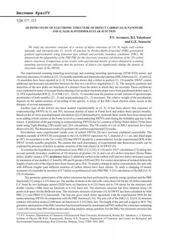 Библиографическое описание:Avramov, Pavel V... Ab Initio Study of Electronic Structure of Defect Carbon (14, 0) Nanotube and (5, 5)/(10, 0) Intermolecular Junction / P. V. Avramov, B. I. Yakobson, G. E. Scuseria. - Текст : непосредственный // Вестник Красноярского государственного университета. - 2003. - Естественные науки, № 2. - С. 50-54. - Библиогр. в конце ст.