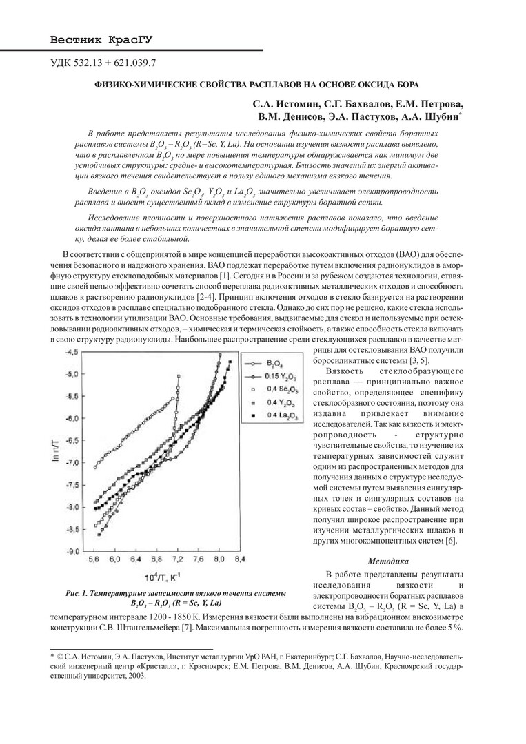 Библиографическое описание:Физико-химические свойства расплавов на основе оксида бора / С. А. Истомин, С. Г. Бахвалов, Е. М. Петрова [и др.]. - Текст : непосредственный // Вестник Красноярского государственного университета. - 2003. - Естественные науки, № 2. - С. 15-21. - Библиогр. в конце ст.