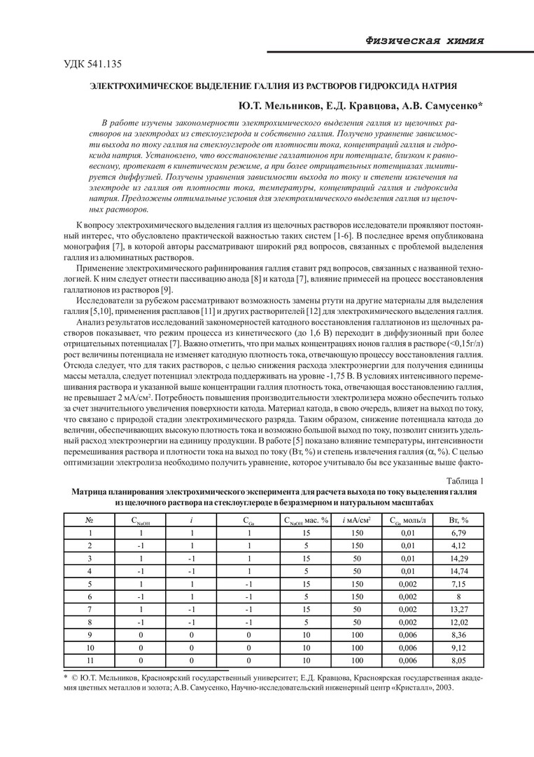 Библиографическое описание:Мельников, Юрий Тихонович. Электрохимическое выделение галлия из растворов гидроксида натрия / Ю. Т. Мельников, Е. Д. Кравцова, А. В. Самусенко. - Текст : непосредственный // Вестник Красноярского государственного университета. - 2003. - Естественные науки, № 2. - С. 26-32. - Библиогр. в конце ст.