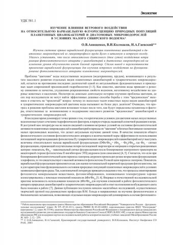 Изучение влияния ветрового воздействия на относительную вариабельную флуоресценцию природных популяций планктонных цианобактерий и диатомовых микроводорослей в условиях малого сибирского водоема