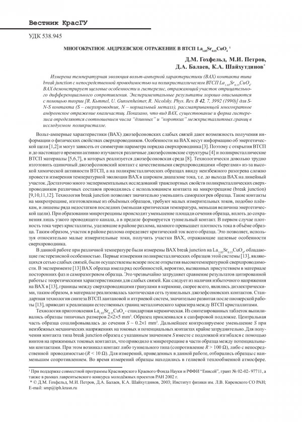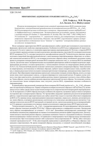 Библиографическое описание:Многократное андреевское отражение в ВТСП La_(1.85)Sr_(0.15)CuO_4 / Д. М. Гохфельд, М. И. Петров, Д. А. Балаев, К. А. Шайхутдинов. - Текст : непосредственный // Вестник Красноярского государственного университета. - 2003. - Физико-математические науки, № 3. - С. 80-85. - Библиогр. в конце ст.