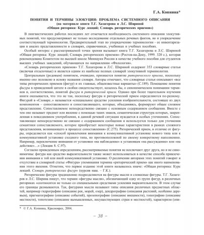 Библиографическое описание:Копнина, Галина Анатольевна. Понятия и термины элокуции: проблема системного описания : (на материале книги Т. Г. Хазагерова и Л. С. Шириной "Общая риторика: Курс лекций; Словарь риторических приемов") / Г. А. Копнина. - Текст : непосредственный // Вестник Красноярского государственного университета. - 2004. - Гуманитарные науки, № 4. - С. 38-41.