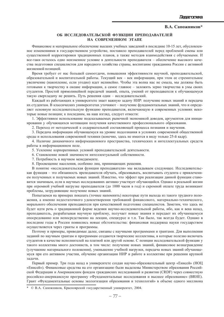 Библиографическое описание:Сапожников, Валентин Алексеевич. Об исследовательской функции преподавателей на современном этапе / В. А. Сапожников. - Текст : непосредственный // Вестник Красноярского государственного университета. - 2004. - Гуманитарные науки, № 4. - С. 77-78.
