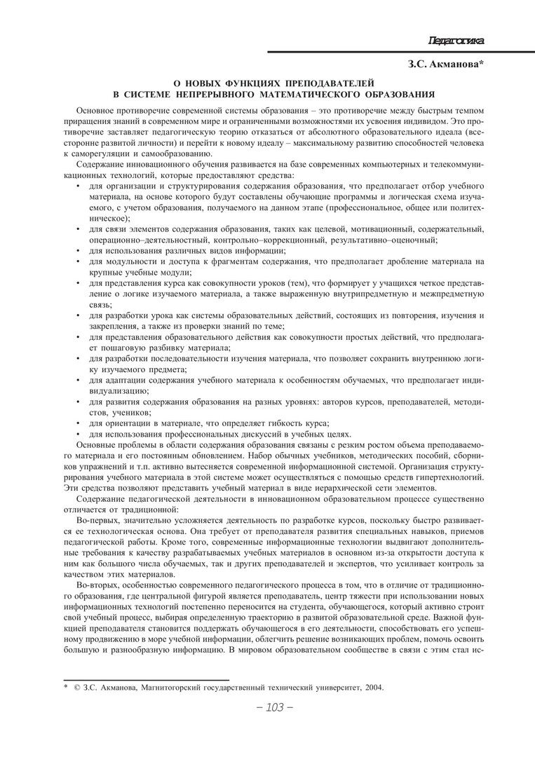 Библиографическое описание:Акманова, З. С. О новых функциях преподавателей в системе непрерывного математического образования / З. С. Акманова. - Текст : непосредственный // Вестник Красноярского государственного университета. - 2004. - Гуманитарные науки, № 4. - С. 103-105.