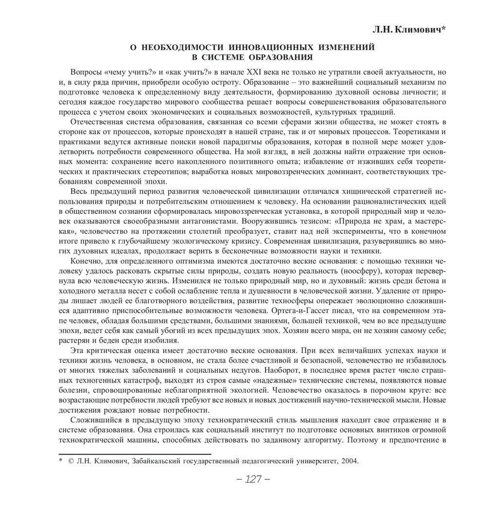 Библиографическое описание:Климович, Л. Н. О необходимости инновационных изменений в системе образования / Л. Н. Климович. - Текст : непосредственный // Вестник Красноярского государственного университета. - 2004. - Гуманитарные науки, № 4. - С. 127-129. - Библиогр. в конце ст.
