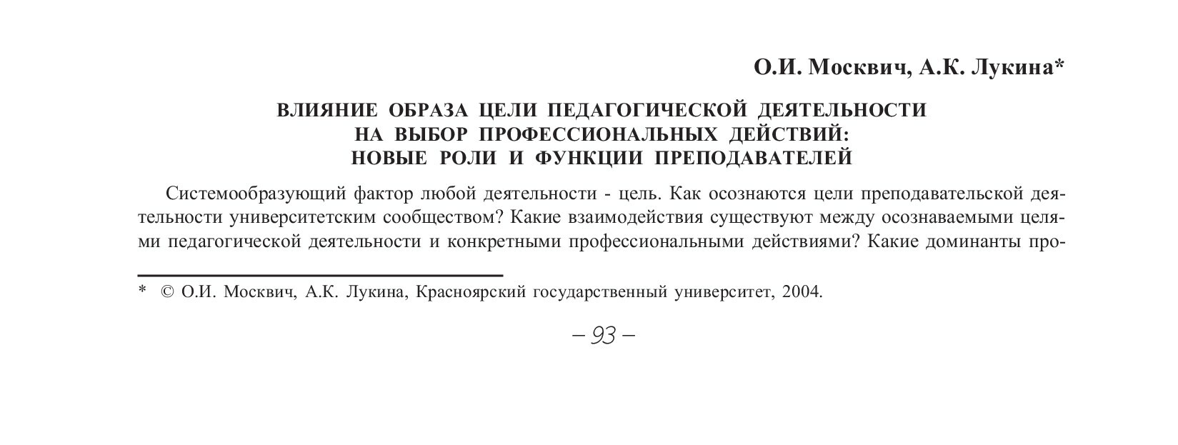 Библиографическое описание:Москвич, Ольга Ивановна. Влияние образа цели педагогической деятельности на выбор профессиональных действий: новые роли и функции преподавателей / О. И. Москвич, А. К. Лукина. - Текст : непосредственный // Вестник Красноярского государственного университета. - 2004. - Гуманитарные науки, № 4. - С. 93-95. - Библиогр. в конце ст.