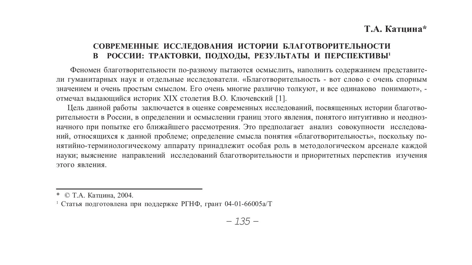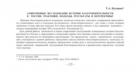 Библиографическое описание:Катцина, Татьяна Анатольевна. Современные исследования истории благотворительности в России: трактовки, подходы, результаты и перспективы / Т. А. Катцина. - Текст : непосредственный // Вестник Красноярского государственного университета. - 2004. - Гуманитарные науки, № 6. - С. 135-139. - Библиогр. в конце ст.