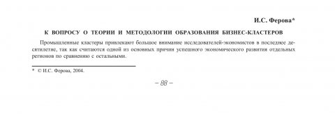 Библиографическое описание:Ферова, Ирина Сергеевна. К вопросу о теории и методологии образования бизнес-кластеров / И. С. Ферова. - Текст : непосредственный // Вестник Красноярского государственного университета. - 2004. - Гуманитарные науки, № 6. - С. 88-92. - Библиогр. в конце ст.
