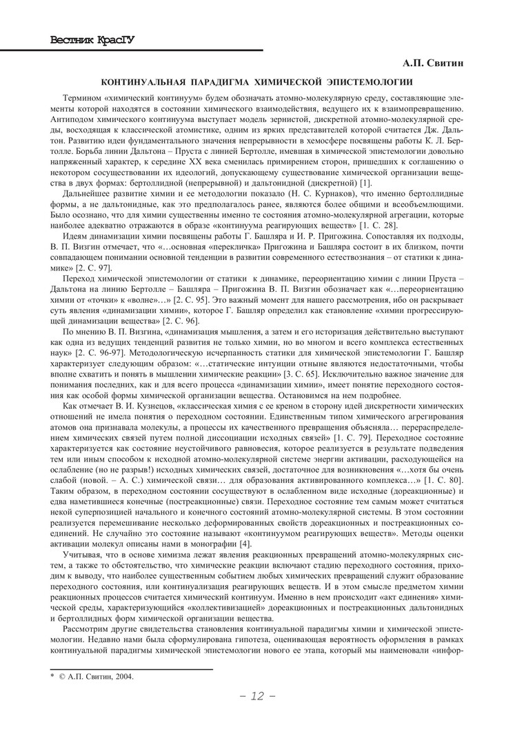 Библиографическое описание:Свитин, Александр Парфенович. Континуальная парадигма химической эпистемологии / А. П. Свитин. - Текст : непосредственный // Вестник Красноярского государственного университета. - 2004. - Гуманитарные науки, № 6. - С. 12-14. - Библиогр. в конце ст.