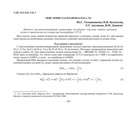 Библиографическое описание:Окисление расплавов Sn-Fe(Co, Ni) / Ю. С. Талашманова, Н. В. Белоусова, Л. Т. Антонова, В. М. Денисов. - Текст : непосредственный // Вестник Красноярского государственного университета. - 2004. - Естественные науки, № 2. - С. 30-33. - Библиогр. в конце ст.