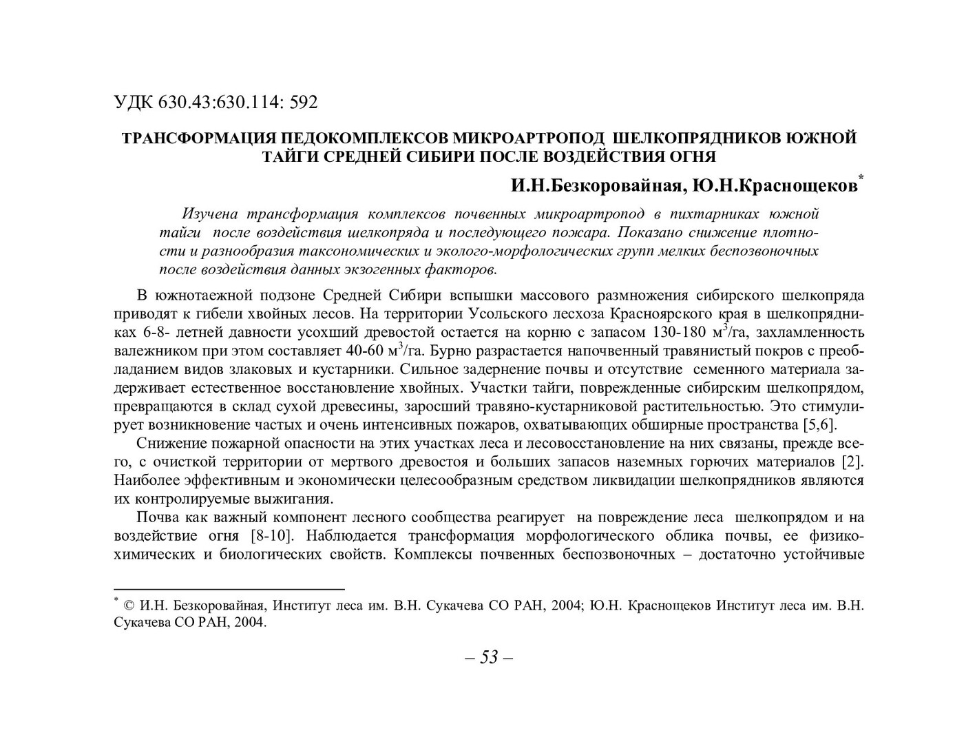 Библиографическое описание:Безкоровайная, Ирина Николаевна. Трансформация педокомплексов микроартропод шелкопрядников южной тайги Средней Сибири после воздействия огня / И. Н. Безкоровайная, Ю. Н. Краснощеков. - Текст : непосредственный // Вестник Красноярского государственного университета. - 2004. - Естественные науки, № 7. - С. 53-58. - Библиогр. в конце ст.