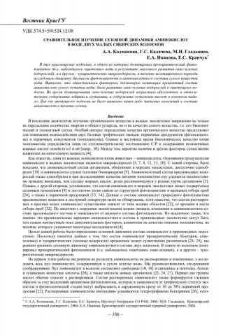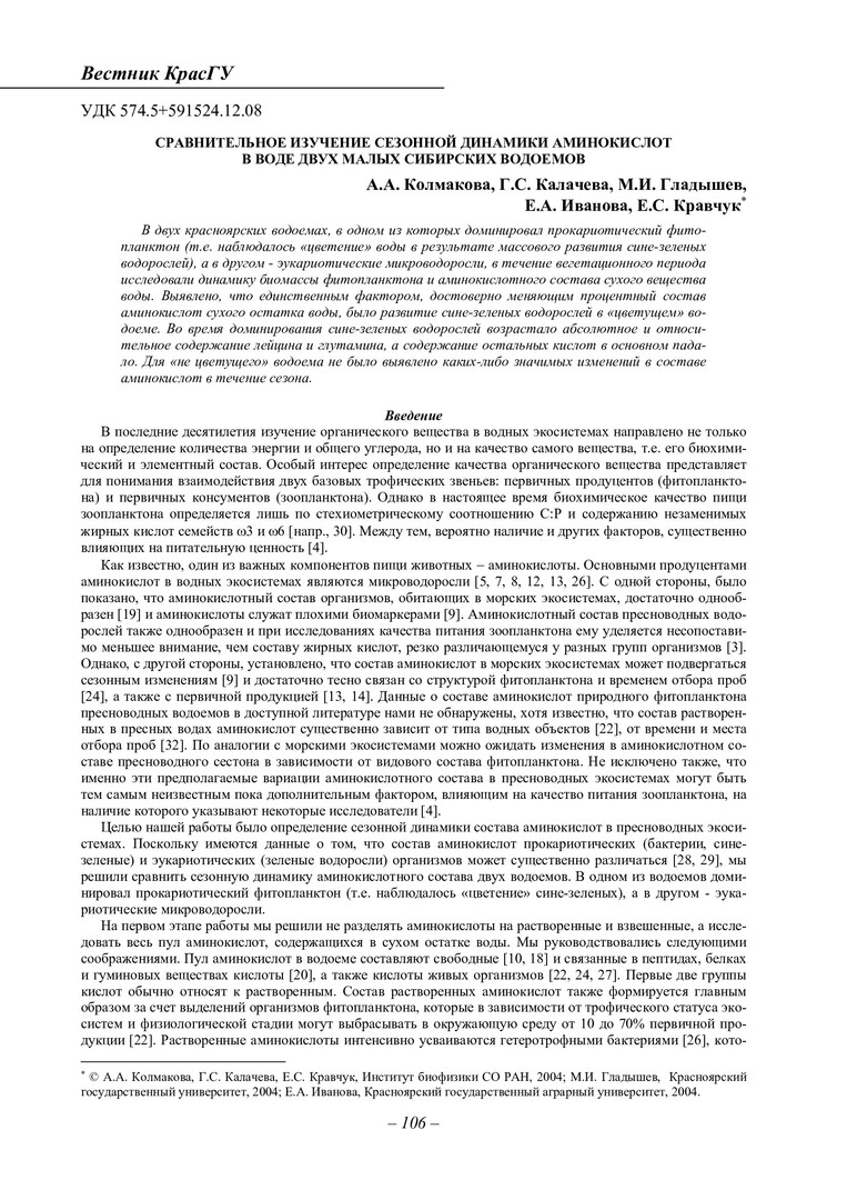 Библиографическое описание:Сравнительное изучение сезонной динамики аминокислот в воде двух малых сибирских водоемов / А. А. Колмакова, Г. С. Калачева, М. И. Гладышев [и др.]. - Текст : непосредственный // Вестник Красноярского государственного университета. - 2004. - Естественные науки, № 7. - С. 106-120. - Библиогр. в конце ст.