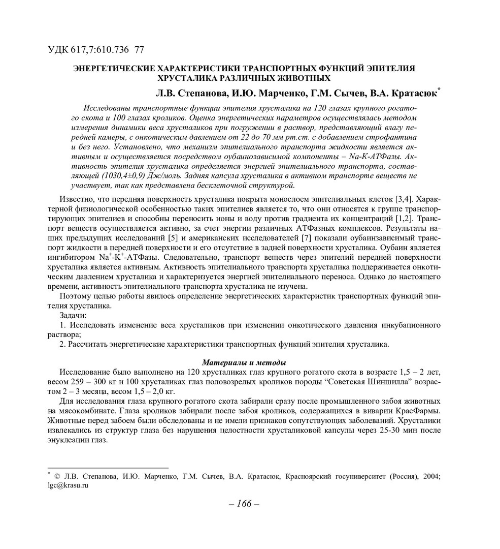 Библиографическое описание:Энергетические характеристики транспортных функций эпителия хрусталика различных животных / Л. В. Степанова, И. Ю. Марченко, Г. М. Сычев, В. А. Кратасюк. - Текст : непосредственный // Вестник Красноярского государственного университета. - 2004. - Естественные науки, № 7. - С. 166-170. - Библиогр. в конце ст.