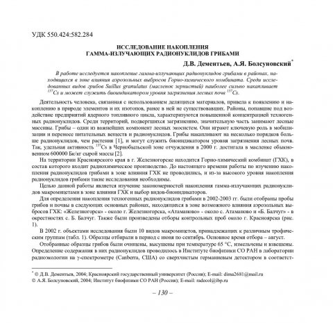 Библиографическое описание:Дементьев, Дмитрий Владимирович. Исследование накопления гамма-излучающих радионуклидов грибами / Д. В. Дементьев, А. Я. Болсуновский. - Текст : непосредственный // Вестник Красноярского государственного университета. - 2004. - Естественные науки, № 7. - С. 130-134. - Библиогр. в конце ст.