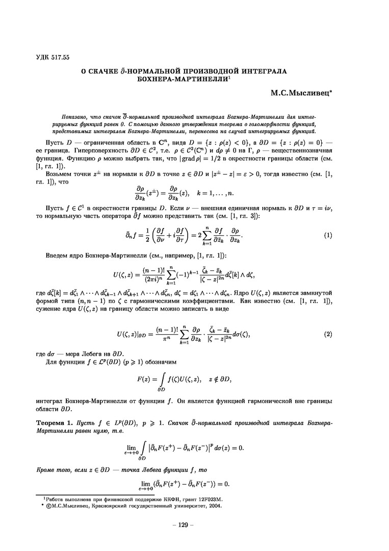 Библиографическое описание:Мысливец, Максим Сергеевич. О скачке дельта-нормальной производной интеграла Бохнера-Мартинелли / М. С. Мысливец. - Текст : непосредственный // Вестник Красноярского государственного университета. - 2004. - Физико-математические науки, № 1. - С. 129-132. - Библиогр. в конце ст.