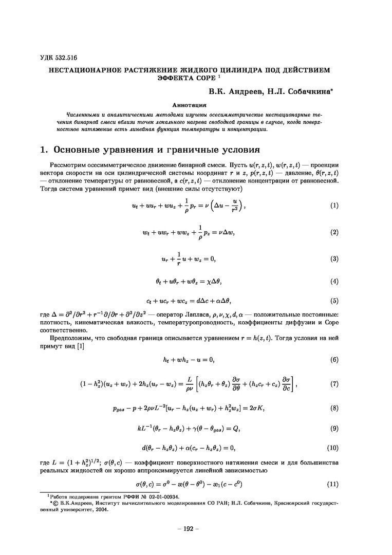 Библиографическое описание:Андреев, Виктор Константинович. Нестационарное растяжение жидкого цилиндра под действием эффекта Соре / В. К. Андреев, Н. Л. Собачкина. - Текст : непосредственный // Вестник Красноярского государственного университета. - 2004. - Физико-математические науки, № 1. - С. 192-199. - Библиогр. в конце ст.