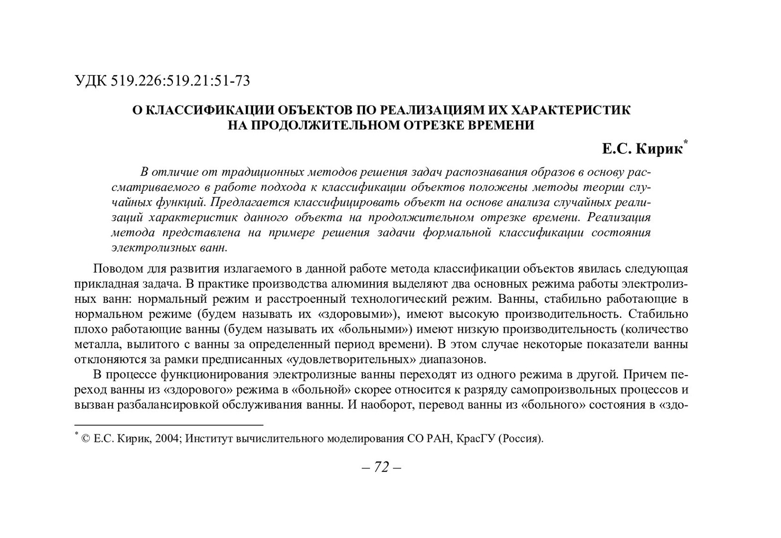 Библиографическое описание:Кирик, Екатерина Сергеевна. О классификации объектов по реализациям их характеристик на продолжительном отрезке времени / Е. С. Кирик. - Текст : непосредственный // Вестник Красноярского государственного университета. - 2004. - Физико-математические науки, № 3. - С. 72-78. - Библиогр. в конце ст.