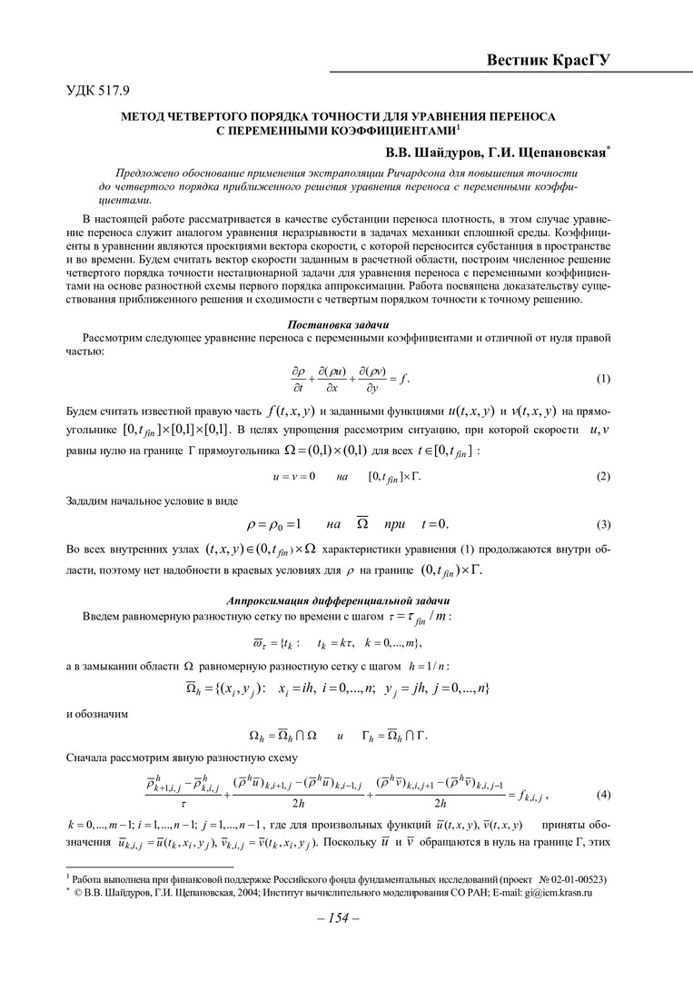 Библиографическое описание:Шайдуров, Владимир Викторович. Метод четвертого порядка точности для уравнения переноса с переменными коэффициентами / В. В. Шайдуров, Г. И. Щепановская. - Текст : непосредственный // Вестник Красноярского государственного университета. - 2004. - Физико-математические науки, № 3. - С. 154-159. - Библиогр. в конце ст.