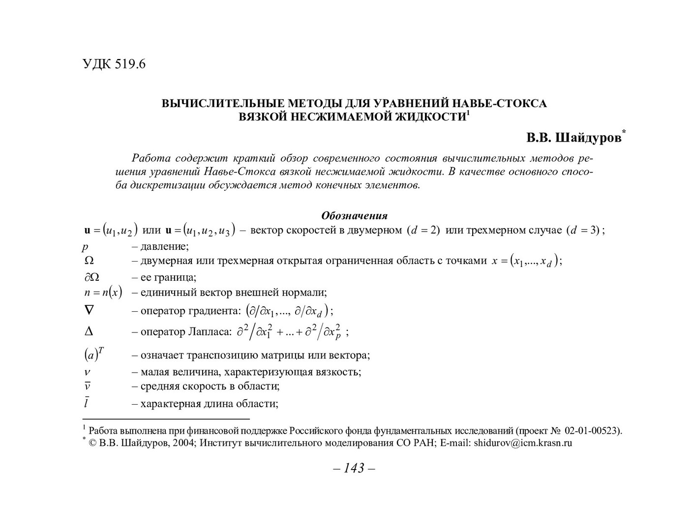 Библиографическое описание:Шайдуров, Владимир Викторович. Вычислительные методы для уравнений Навье-Стокса вязкой несжимаемой жидкости / В. В. Шайдуров. - Текст : непосредственный // Вестник Красноярского государственного университета. - 2004. - Физико-математические науки, № 3. - С. 143-153. - Библиогр. в конце ст.