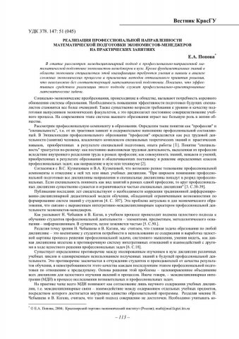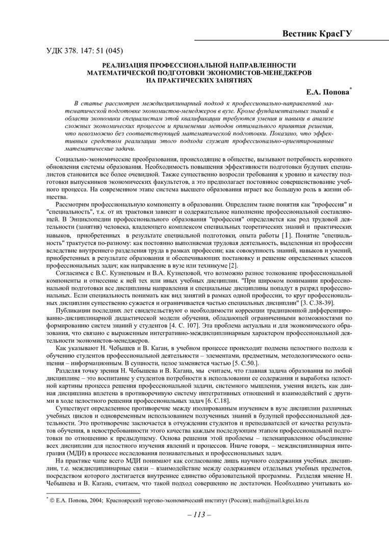 Библиографическое описание:Попова, Е. А. Реализация профессиональной направленности математической подготовки экономистов-менеджеров на практических занятиях / Е. А. Попова. - Текст : непосредственный // Вестник Красноярского государственного университета. - 2004. - Физико-математические науки, № 3. - С. 113-118. - Библиогр. в конце ст.