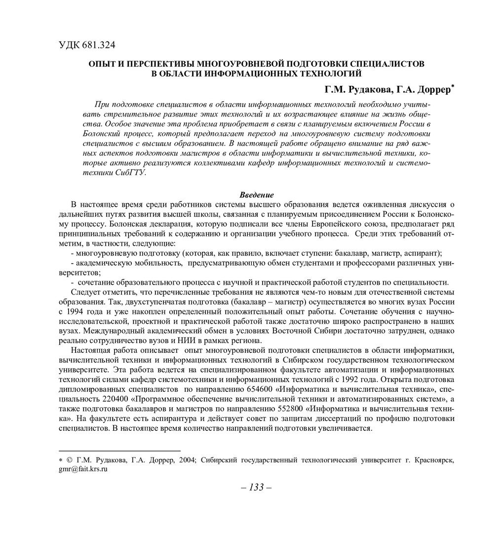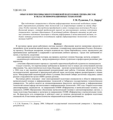 Библиографическое описание:Рудакова, Галина Михайловна. Опыт и перспективы многоуровневой подготовки специалистов в области информационных технологий / Г. М. Рудакова, Г. А. Доррер. - Текст : непосредственный // Вестник Красноярского государственного университета. - 2004. - Физико-математические науки, № 3. - С. 133-139. - Библиогр. в конце ст.