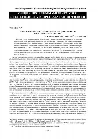 Библиографическое описание:Великанов, Дмитрий Анатольевич. Универсальная схема для исследования электрических характеристик твердых тел / Д. А. Великанов, И. С. Игнатов, Н. В. Волков. - Текст : непосредственный // Вестник Красноярского государственного университета. - 2004. - Физико-математические науки, № 5. - С. 118-122. - Библиогр. в конце ст.
