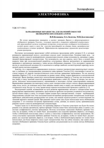 Библиографическое описание:Казанцев, Владимир Петрович. Вариационные неравенства для значений емкостей цилиндрических конденсаторов / В. П. Казанцев, О. А. Золотов, М. В. Долгополова. - Текст : непосредственный // Вестник Красноярского государственного университета. - 2004. - Физико-математические науки, № 5. - С. 63-69. - Библиогр. в конце ст.