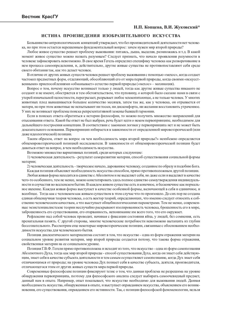 Библиографическое описание:Копцева, Наталья Петровна. Истина произведения изобразительного искусства / Н. П. Копцева, В. И. Жуковский. - Текст : непосредственный // Вестник Красноярского государственного университета. - 2005. - Гуманитарные науки, № 3. - С. 25-32.