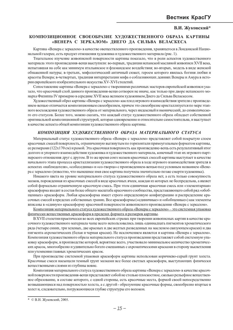 Библиографическое описание:Жуковский, Владимир Ильич. Композиционное своеобразие художественного образа картины "Венера с зеркалом" Диего да Сильва Веласкеса / В. И. Жуковский. - Текст : непосредственный // Вестник Красноярского государственного университета. - 2005. - Гуманитарные науки, № 3. - С. 15-25.